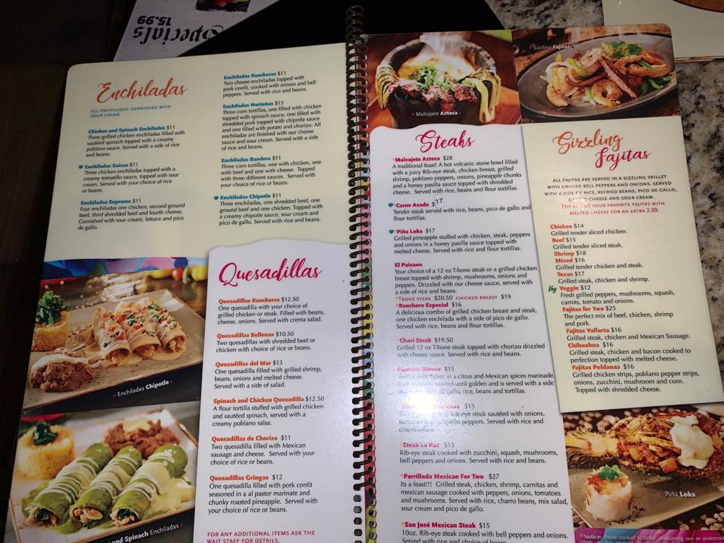 Steak Arrachera, Chicken breast topped with shrimp, two corn cheese quesadilla and your choice of rice or beans.